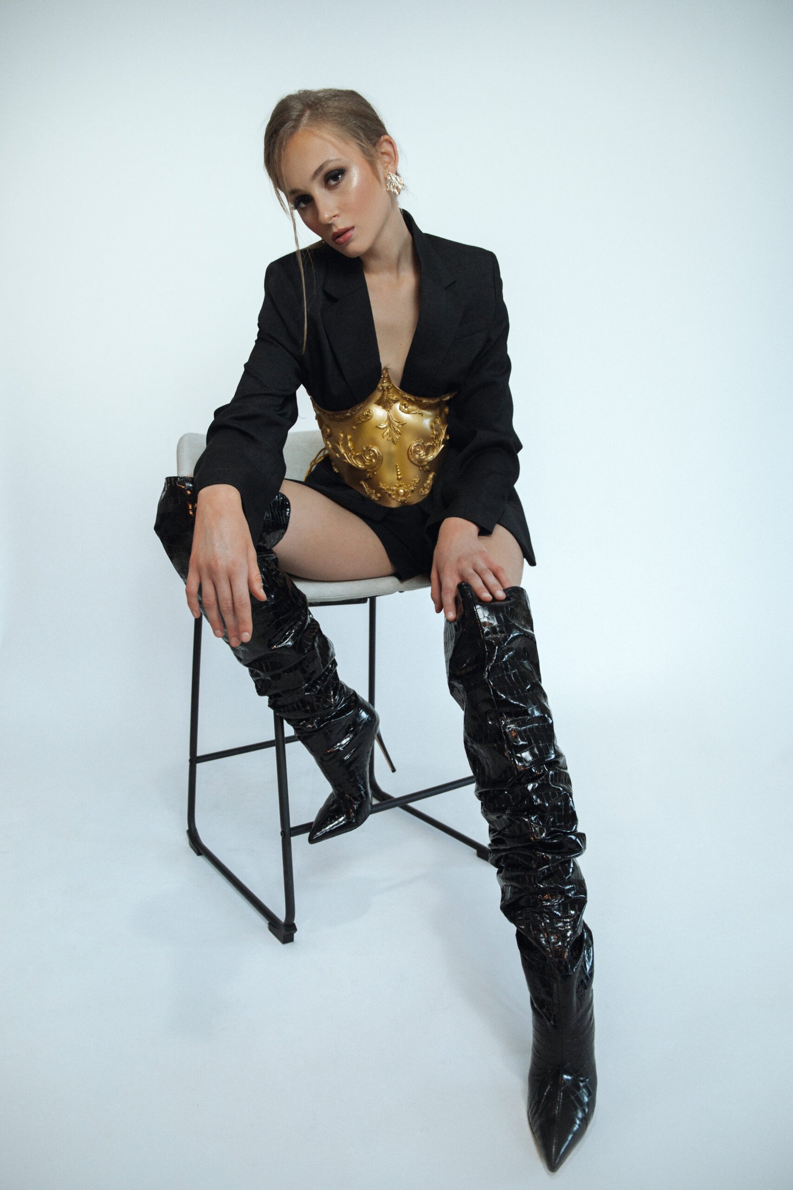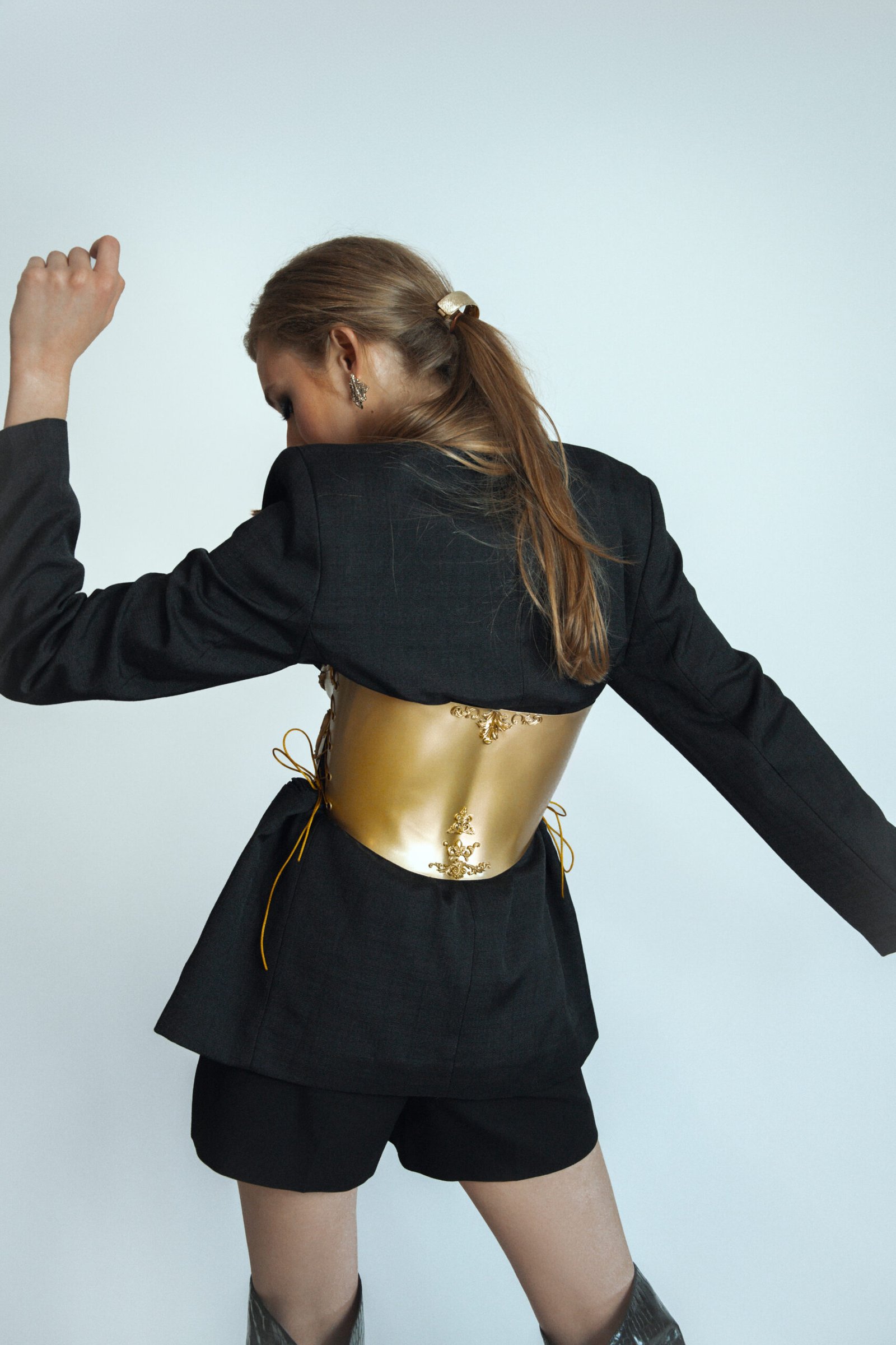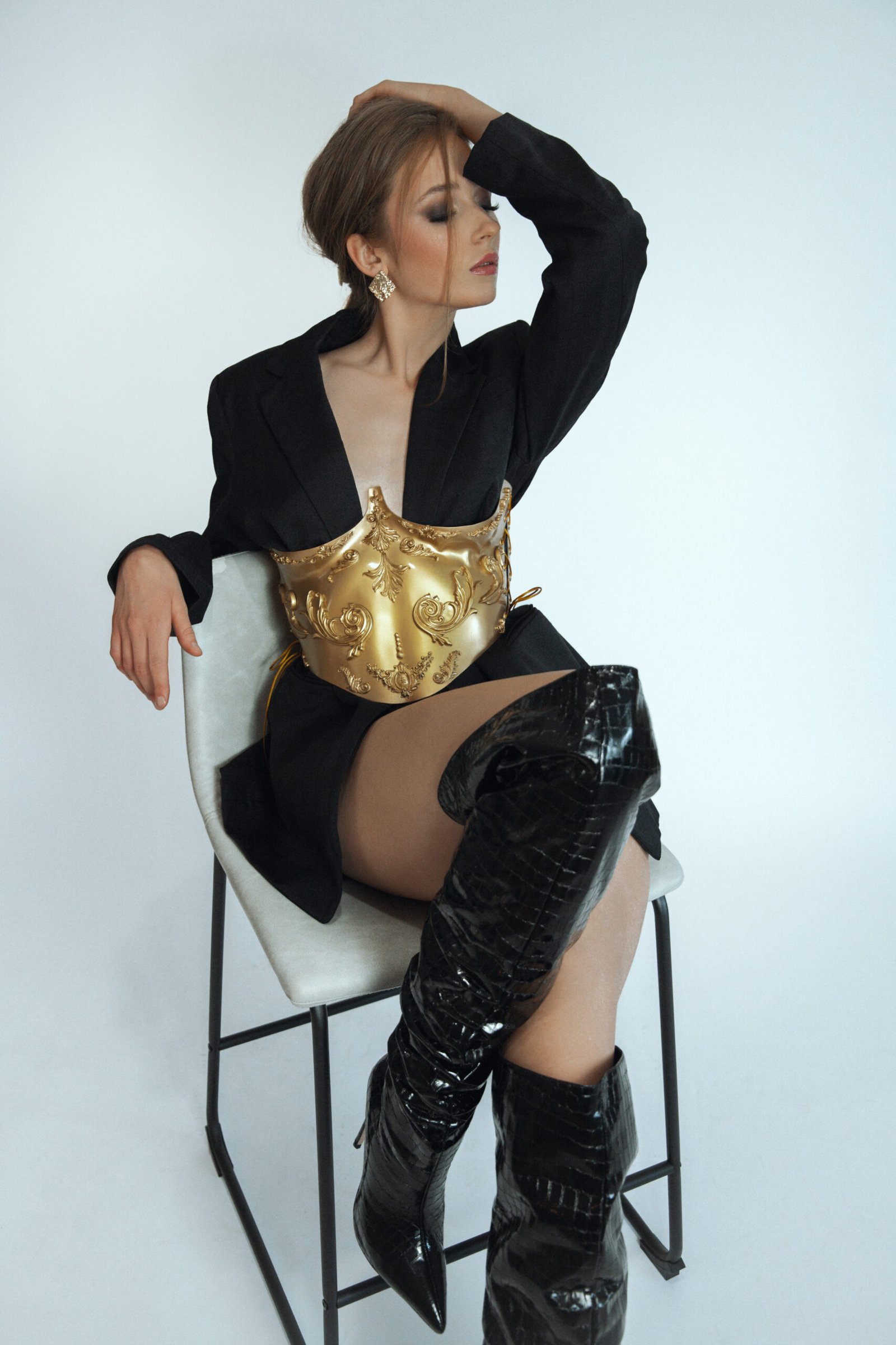 Be the first to review “Gold Corset Underbust Belt Costume Stage Wear Party Bustier Valentines Breastplate Gold Angels Outfit Dance Performance Metalic y2k Top”