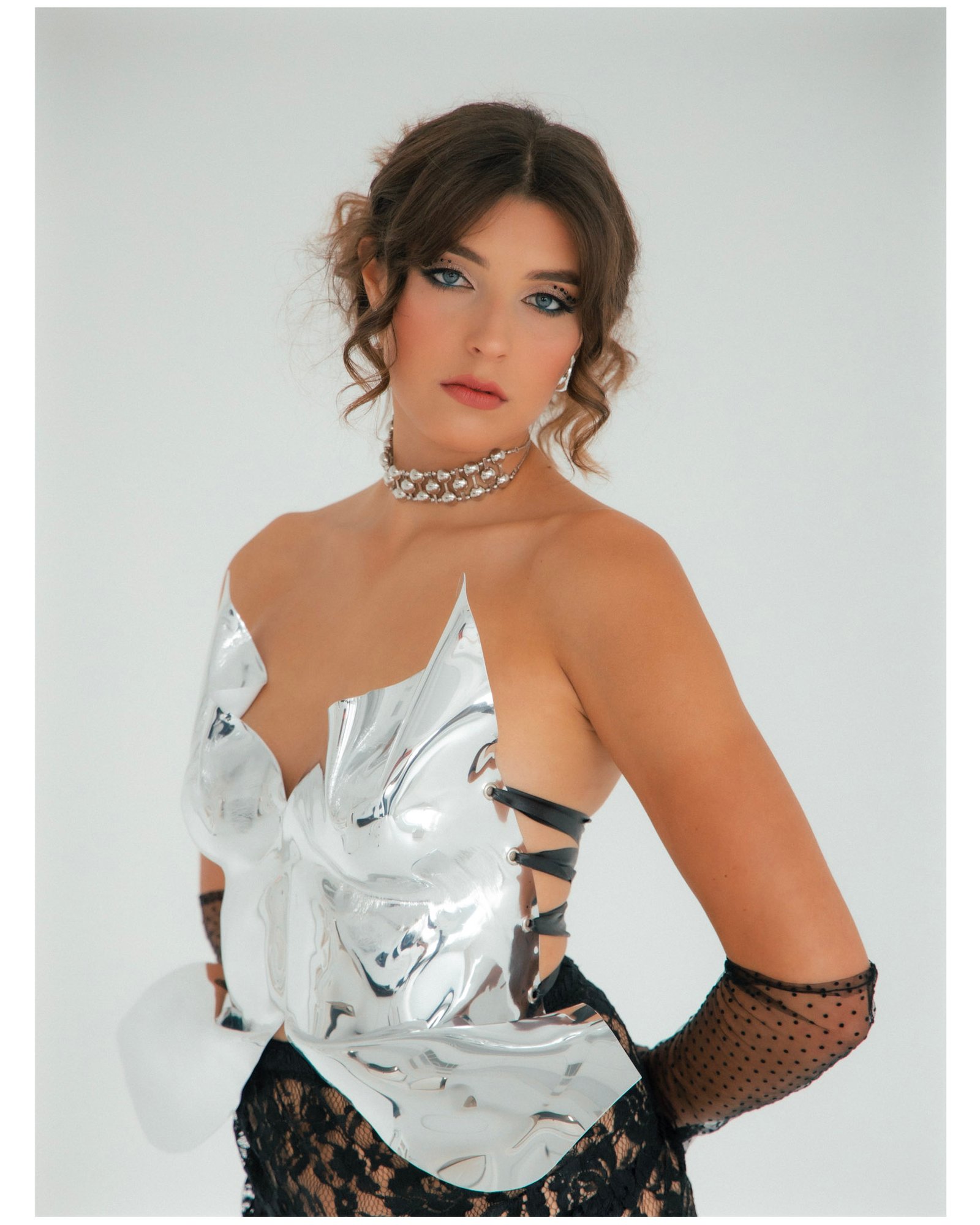 Be the first to review “Crop Top Shiny Metallic Silver Corset Performance Costume Rave Outfit Chrome Mirror Finish Corset Party Exclusive Outfit Breast Plate Top”