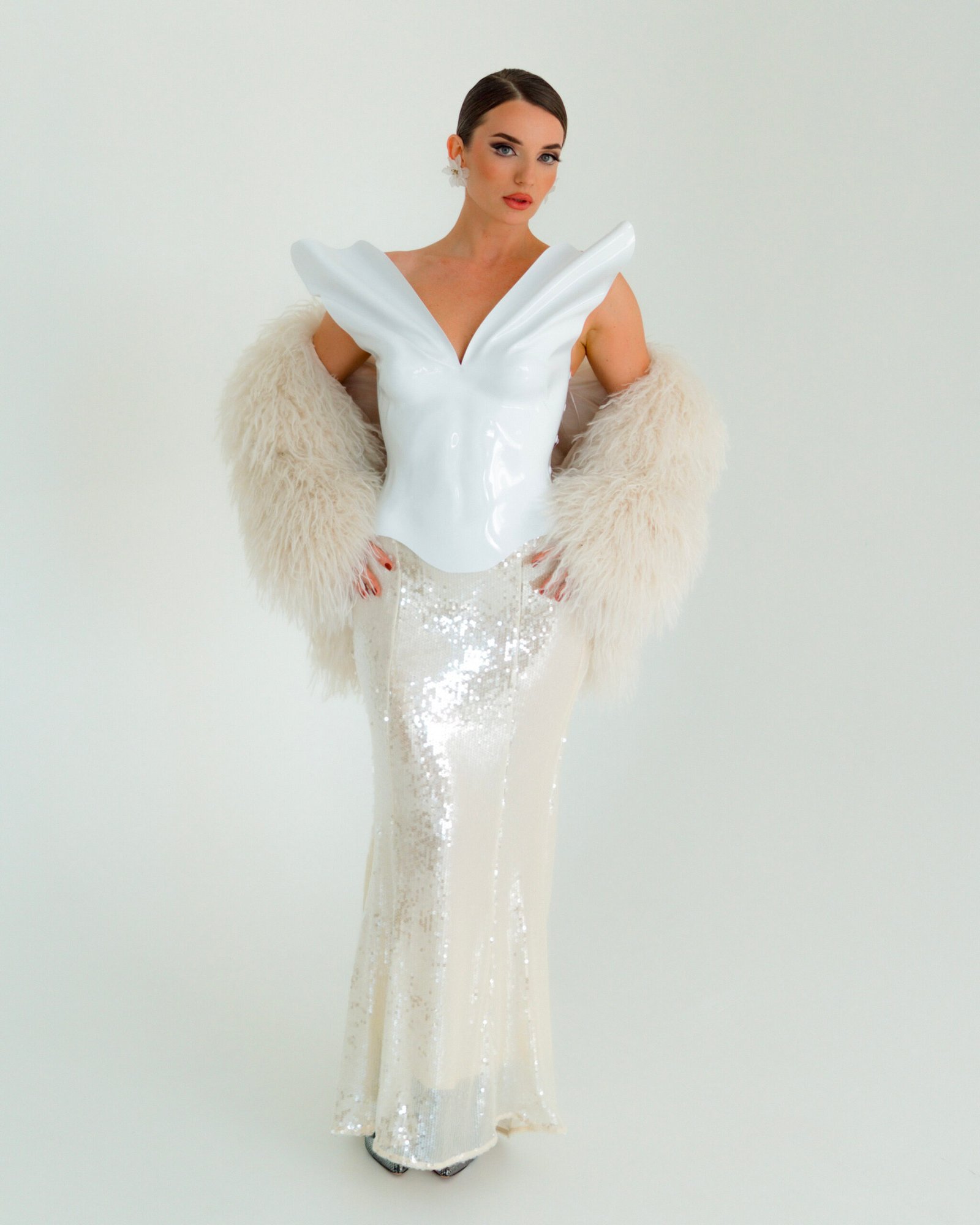 This custom-fit, modern bridal bustier is perfect for special occasions, offering a unique and handcrafted design. Whether for a fantasy cosplay costume or a goddess-inspired bright outfit, this breastplate corset ensures you stand out beautifully.