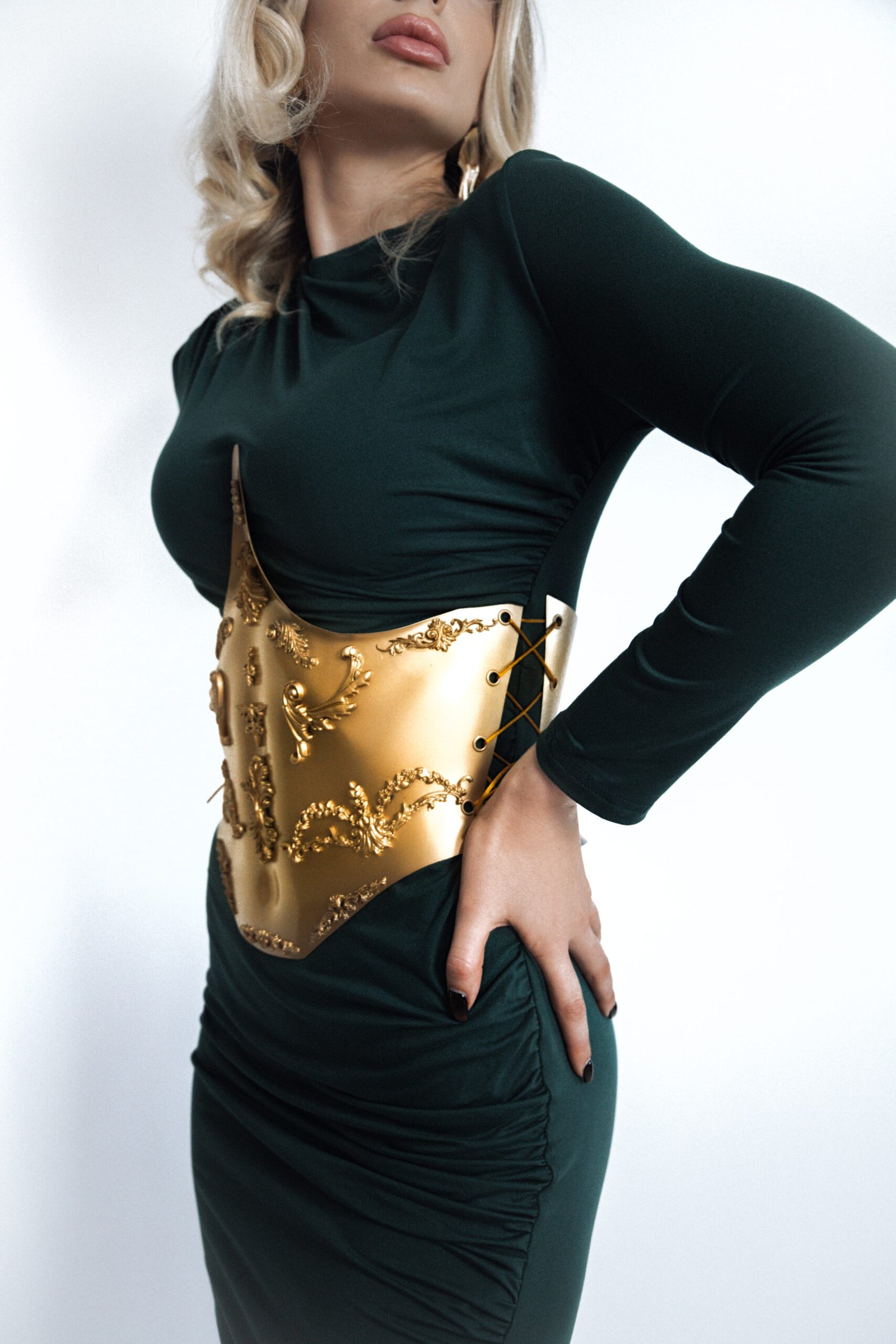 Be the first to review “Gold Baroque Corset Under Bust Belt Breastplate Festival Wearable Art Stage Wear Woman Gold Shiny Rave Outfit Dance Costume Y2K Metallic”