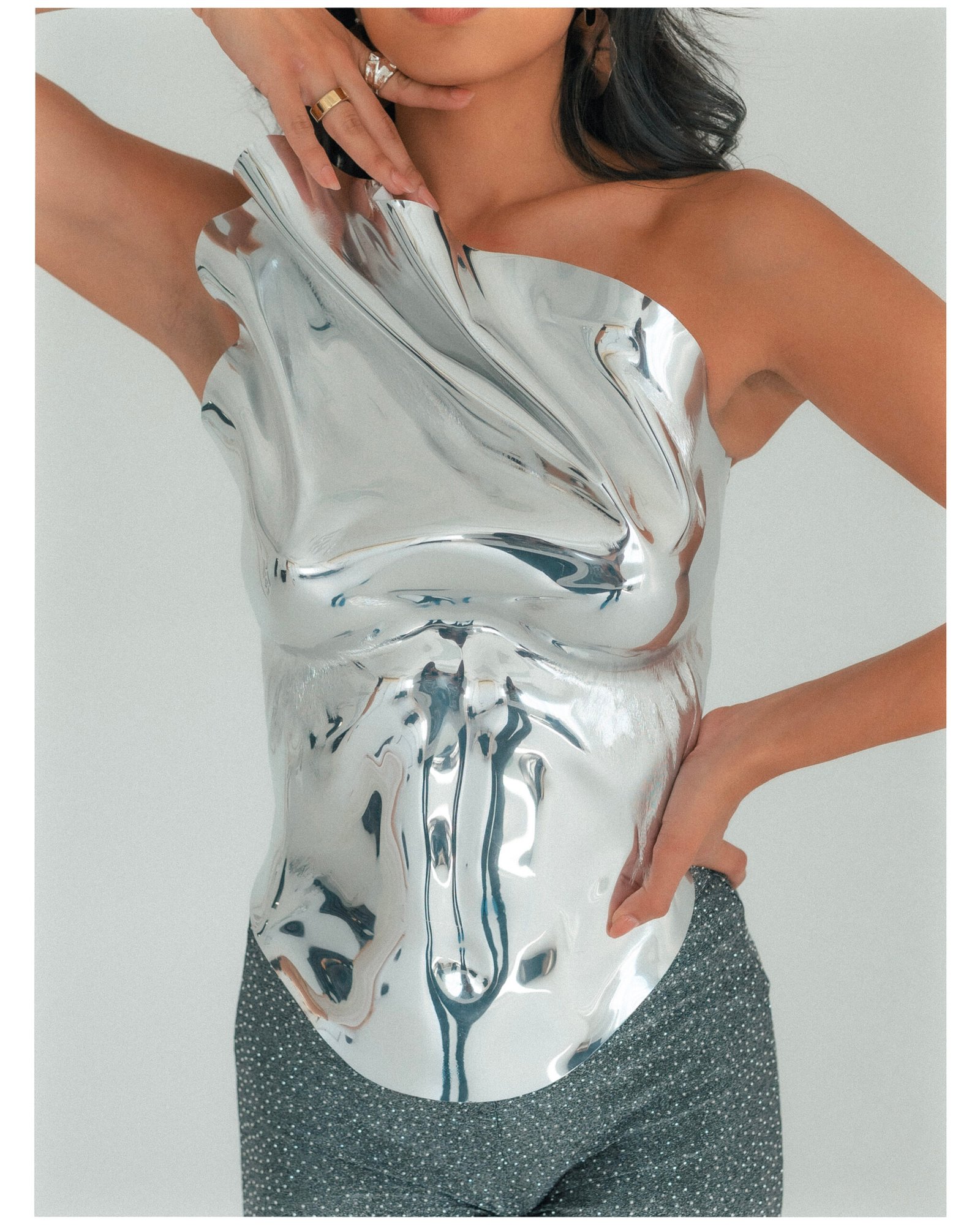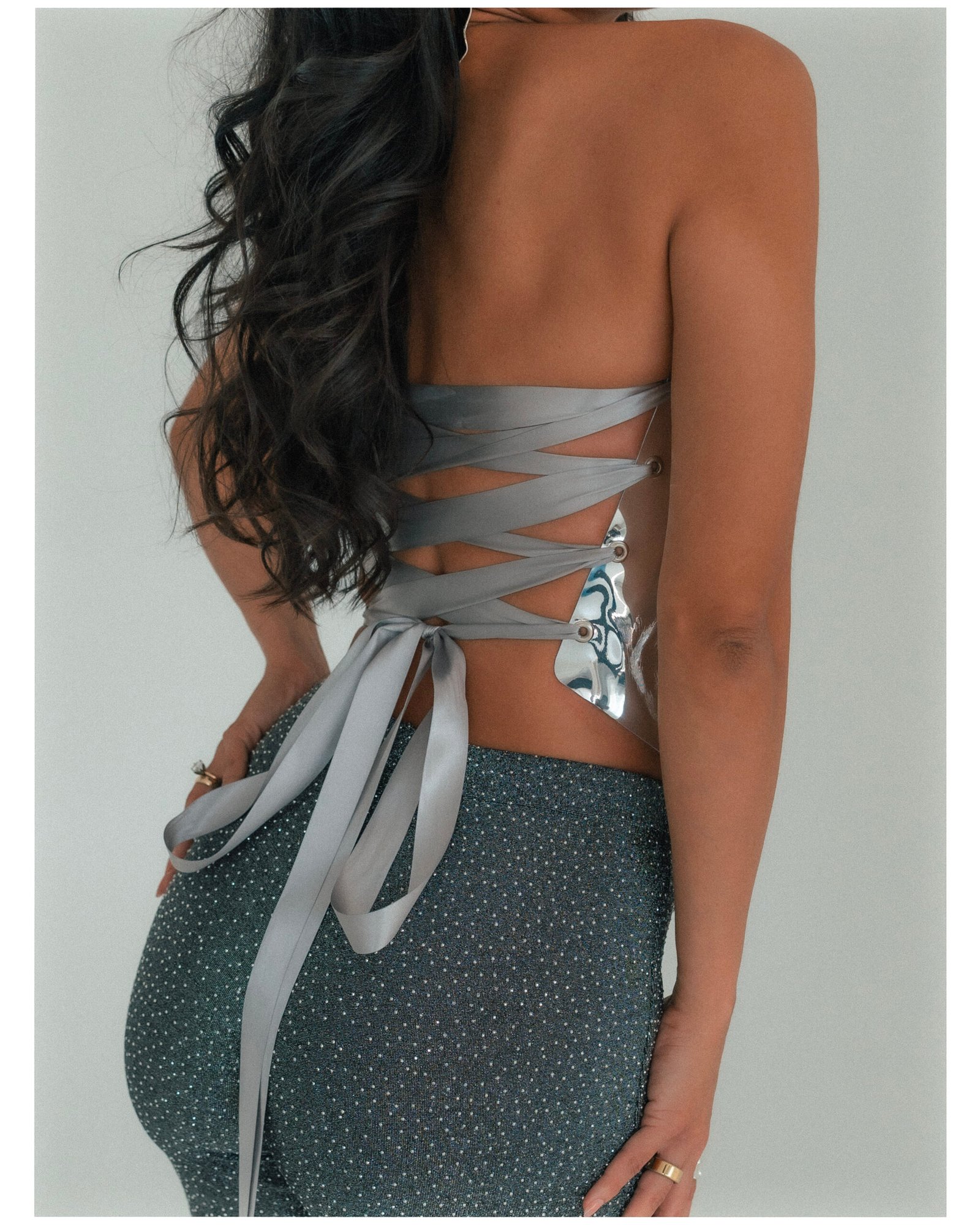 Molded Chrome Mirror Silver Corset Rave Outfit Coachella Look Metallic Bustier Top For Outstanding Look Breast Plate Top Worbla Corset